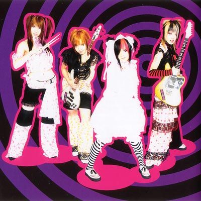 Nun denn, wir fuhren dann zurück, reichlich entspannt (falls es nicht so wirkte, verzeiht mir, Mädels, aber es war anstrengend ^^; ) und landeten dann schon um 19 Uhr zu Hause, wo Mama Kiwi (also die echte XD) Essen machte. Wir verschwanden dann in meinem vollkommen zugestellten Zimmer, beschäftigten uns mit der CD/DVD und unseren Cosplayideen. Die nun soweit gediehen sind, dass wir "Danger *Gang*" machen wollen, eine JRockBand, die nur aus Frauen besteht. Und was für welchen XD Ich bin die coole Gitarristin, allerdings darf ich wieder keine Titten haben. Damn it! Das sind übrigens die Hübschen, ich bin ganz rechts. Diese Hose! Alteh! (<- Wort, welches in letzter Zeit überhand nahm und ich dringend loswerden muss XD)
